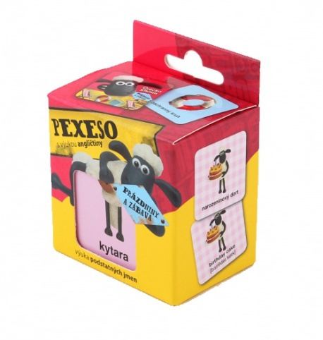 Dětské pexeso s výukou angličtiny na 36 kartičkách s motivem oblíbeného dětského seriálu Ovečka Shaun.