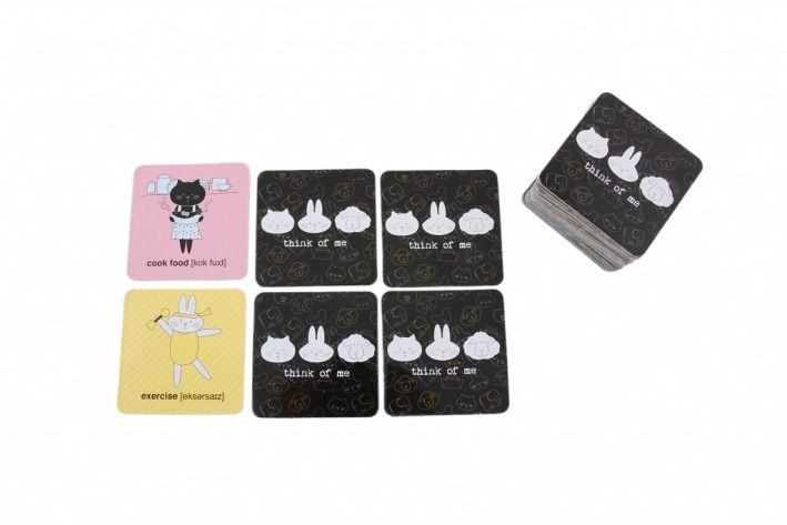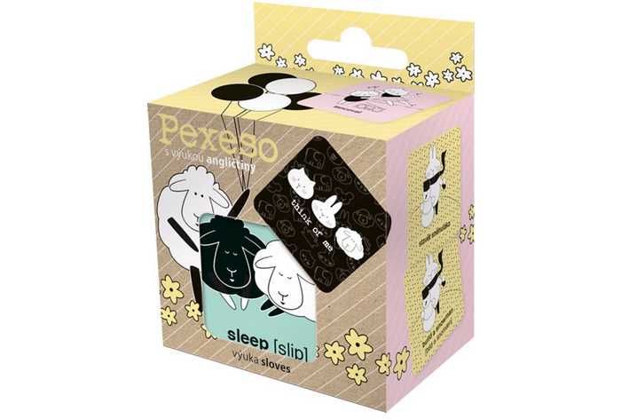 Pexeso je uložené v krabičce. Vždy jedna karta obsahuje český název a druhá do páru je v jazyce anglickém.