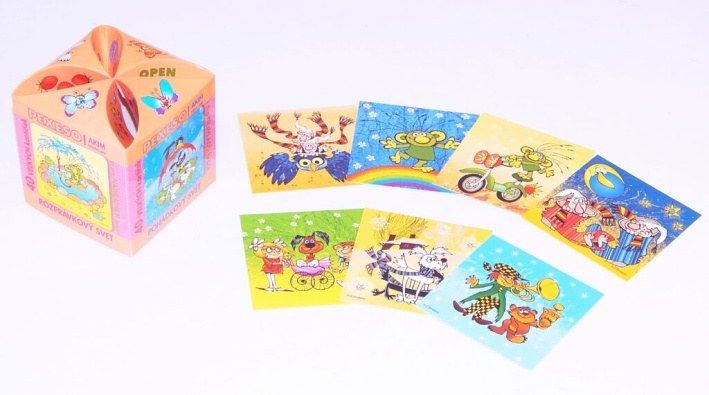 "velikost kartičky 7,6 x 7,6 cm (š x d x v), velké obrázky - snadné jejich zapamatování - hra i pro nejmladší hráče