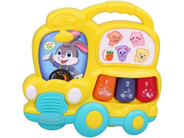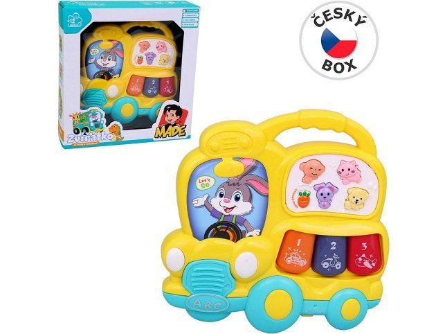 Piánko autobus, se světlem, hudbou a zvukem, na baterie, 15 x 3,5 x 15 cm