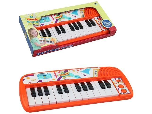 Piánko je ideální volbou pro malé začínající hudebníky k seznámení s klávesami. Dětské elektronické piáno 24 kláves, 24 demo melodií, dvě různé nastavení hlasitosti. Rozměr hračky: 30 x 14 x 3 cmNapájení: 2 x baterie 1,5V typu "AA" (nejsou součástí). Materiál: plastVhodné pro děti od 3 let.