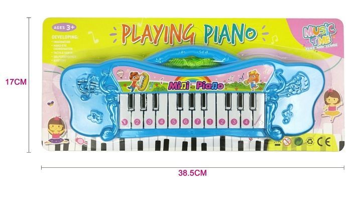 Piánko se zvukovými efekty. Velikost 32 cm. 2 režimy - 8 skladeb, jednotlivé tóny. 2 varianty - modrá, růžová. Volba režimu klávesou "Conversion". 2xAA baterie nejsou součástí.