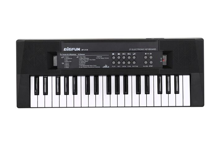 Malý koncert u vás doma! Elektronické pianko s 37 klávesami nabízí spoustu zábavy pro začínající hudebníky. Obsahuje různé zvuky, rytmy i demo skladby a navíc je vybaveno mikrofonem, se kterým si děti mohou zazpívat jako skutečné hvězdy. Napájení přes USB zajistí pohodlné hraní bez baterií.