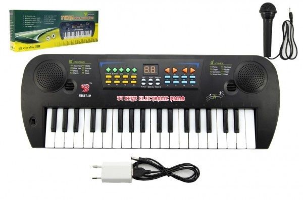 Hračka dětské piano na baterie s mnoha funkcemi. Součástí balení je mikrofon a adaptér. Vhodné od 3 let.
