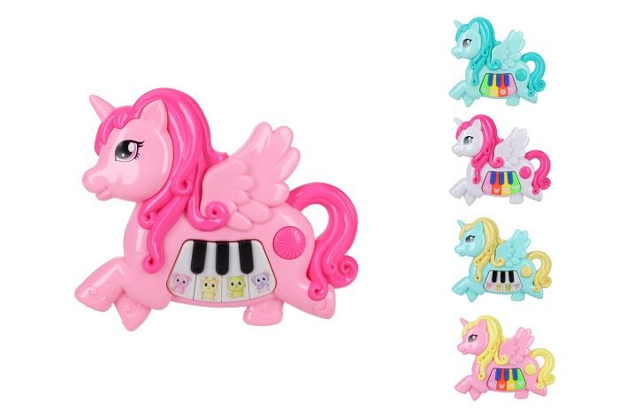 Barevné piano ve tvaru jednorožce se zvukovými a světelnými efekty bude zábavnou formou u dětí rozvíjet cit pro hudbu a jejich motoriku.