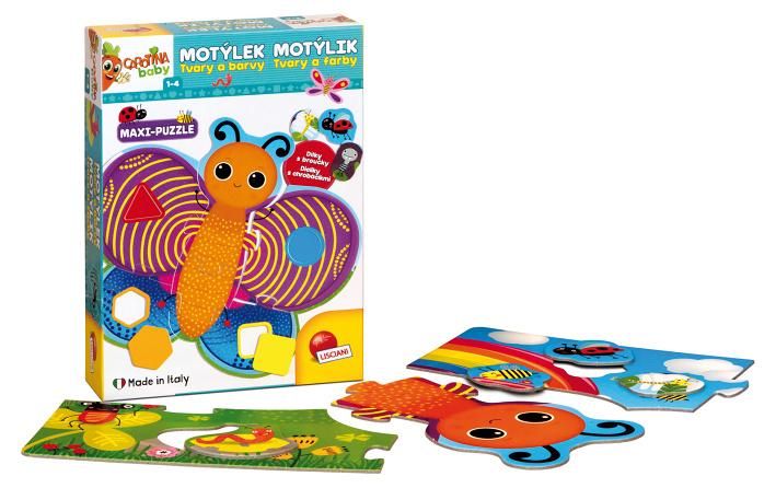 Série BABY pro naše nejmenší!S veselým pestrým motýlkem si děti užijí spoustu zábavy. Geometrické tvary a mnoho druhů broučků jim pomůže rozvíjet logické myšlení, tvořivost a zručnost.Vedle sestavování dílků puzzle, vkládá také Vaše dítě geometrické tvary a tvary broučků na správná místa. Tato zábavná hra pro milovníky přírody rozvíjí zručnost, souhru oka a ruky, logiku a tvořivost. Hra je vyrobena z vysoce kvalitního materiálu, který je odolný a bezpečný pro malé děti!