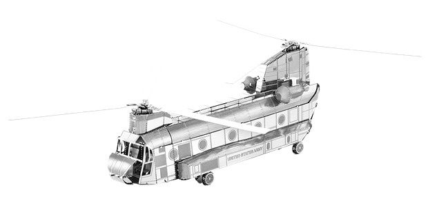 Skvělý 3D kovový model Metal Earth - Boeing CH-17 Chinook. Jednotlivé části modelů jsou vyřezané laserem pro ještě větší přesnost. K sestavení nepotřebujete žádné lepidlo, a přesto vás výsledek ohromí.
