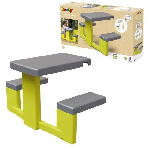 Piknikový stoleček s 2 lavicemi pro děti jako doplněk pro domeček Neo Jura Lodge, My New House, Chef House a Evo Friends House. Anti-UV ošetření zaručuje dobrou odolnost a trvanlivost barev. Výška stolečku 49 cm. Délka lavice 81 cm. Max. nosnost každé lav