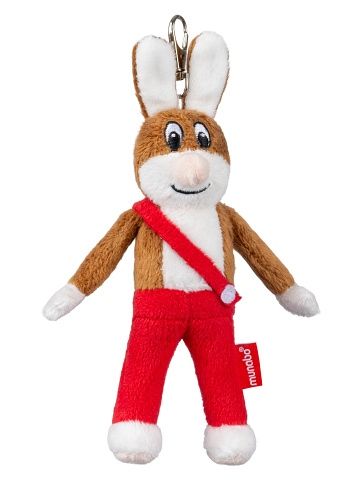 Pinďa, zajíc "sportovec" z nejznámějšího českého komiksu Čtyřlístek. Provedení: Přívěsek z hebkého mikroveluru na kovové karabince.