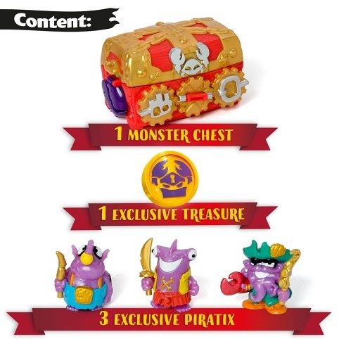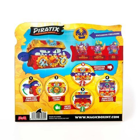 Moře je plné nebezpečí, jako je tento prokletý truhla s vlastním rozumem na dně oceánu…Ale Piratix se ničeho nebojí! Objev exkluzivní Poklad Monstra a použij ho k vyřešení hádanky truhly. Ale pozor… pokud se spletete, monstrum se objeví a stáhne vás do hlubin oceánu! Pokud ji ale správně vyřešíte… osvobodíte prokletou posádku, která byla držena v zajetí! Poděkují vám zlatem a rubíny, nebo se pokusí ukrást váš lup? Volba je na tobě, piráte!Obsah balení:• 1 truhla Pokladu Monstra• 3 exkluzivní Piratixové• 1 exkluzivní pokladová mince• 3 doplňky