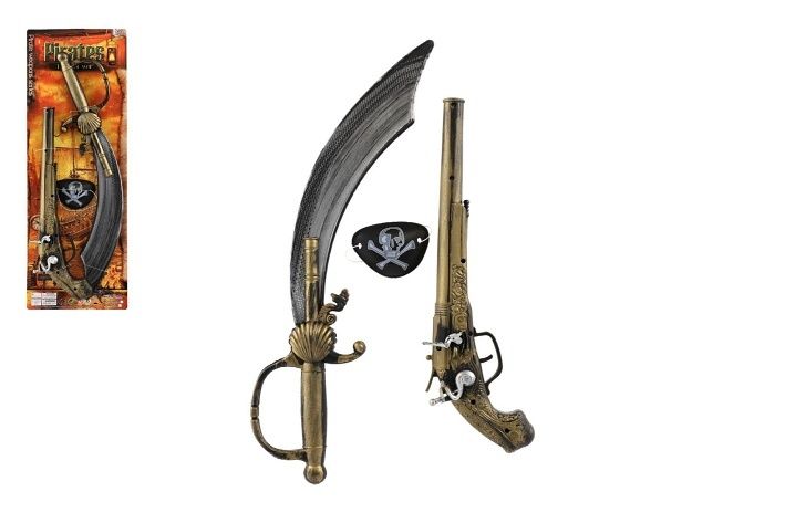 Vzhůru na palubu! Tato pirátská sada promění každého malého dobrodruha v neohroženého mořského vlka. Obsahuje nezbytné vybavení pro každého piráta – meč nebo šavli, klapací pistoli a pirátskou pásku přes oko. Ideální doplněk ke karnevalovému kostýmu, na narozeninovou párty nebo k hrám na piráty.