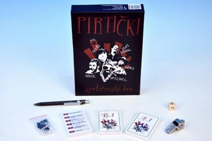 Balení obsahuje:20 hracích karet se 120-ti hrami (černé barvy), 40 (20 A a 20 B) karet pro hru čelovka (bílé barvy), 2 páry klipů pro uchycení karet pro hru čelovka k čelu, 2 gumičky pro spojení klipů, 5 černých hracích karet pro dopsání vlastních her, 10 bílých karet pro dopsání vlastních osob pro hru čelovka, píšťalku Pirtički, propisku Pirtički, hrací kostku, pravidla hry