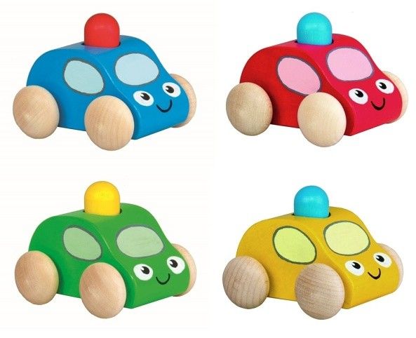 Dřevěná pískací autíčka s majákem. Sada 4 autíček, každé v jiné barvě. Jedná se o ambulanci, policii, hasiče a vojáky. Na zadní straně má autíčko symbol příslušné záchranné složky. Při mačkání majáku autíčko píská.