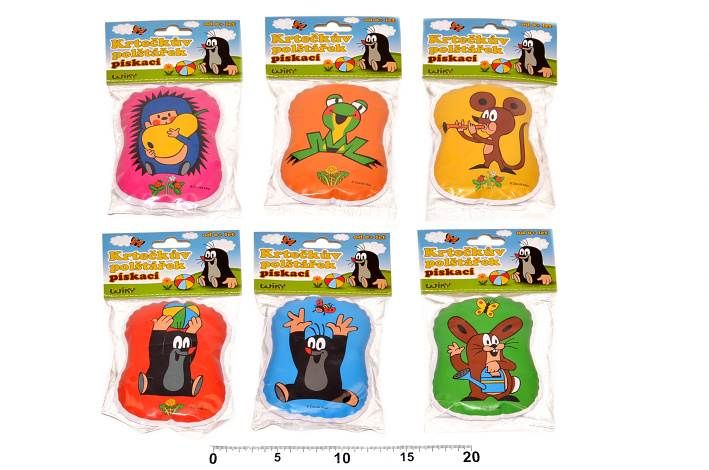 Pískací polštářek z bezpečného materiálu pro nejmenší s motivem oblíbeného Krtečka a jeho kamarádů. Polštářek děti zaujme svou barevností a pískáním, miminko může hračku bez problémů okusovat a ulevit tak při bolestech dásní při růstu prvních zoubků.