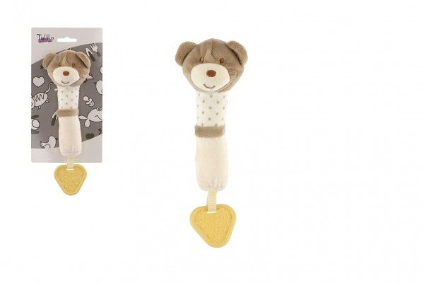 Pískátko/kousátko medvěd plyš 24cm béžový na kartě v sáčku 0+