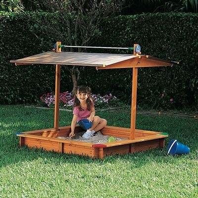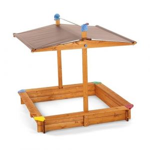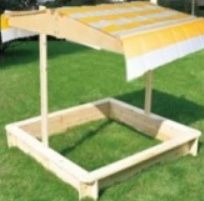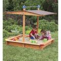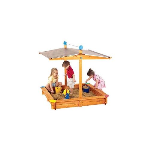 Dřevěné pískoviště se stříškou, které slouží zároveň i jako hrací centrum. Stříška chrání děti před slunečním zářením a slouží jako kryt.