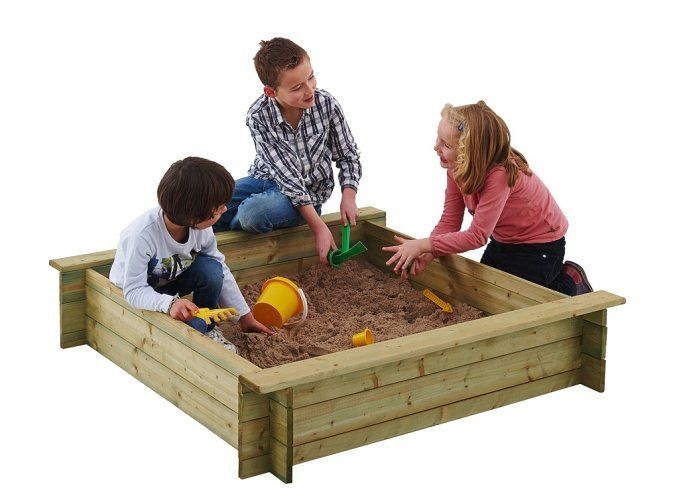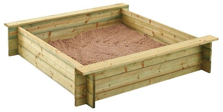 pískoviště dřevěné – borovice 120 × 120 cm 25cm vysoké 2 sedací prkna na vrchu pískoviště