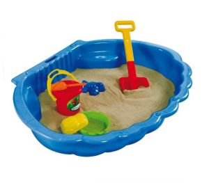 Výborné pískoviště ve tvaru mušle se dvěmi sedátky na ven, nebo balkón. Zároveň se dá použít jako bazének. V různých barvách červená, zelená, modrá a žlutá. Vyrobeno z kvalitního a odolného plastu v Maďarsku.