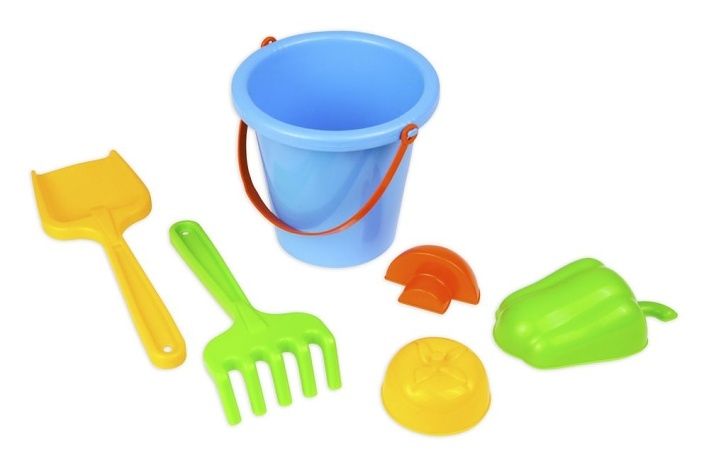 Kyblík o průměru 16cm / 1,4l, hrábě, lopatka, 3x formička