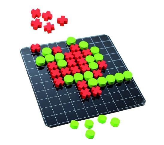 Oblíbená strategická, zábavná hra pro všechny generace. Výrobek obsahuje dřevěné hrací kameny (kolečka, kříže) a plechovou tabulku potištěnou čtverečkovou sítí.