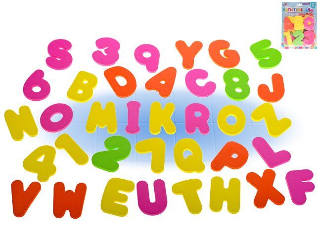 Písmena a čísla pěnová do vany 36ks na kartě