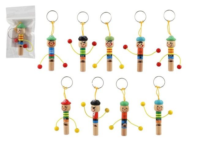 Píšťalka panáček přívěsek dřevo 8cm s poutkem mix druhů v sáčku