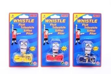 Kovová sportovní píšťalka s řemínkem na krk a karabinkou ve třech