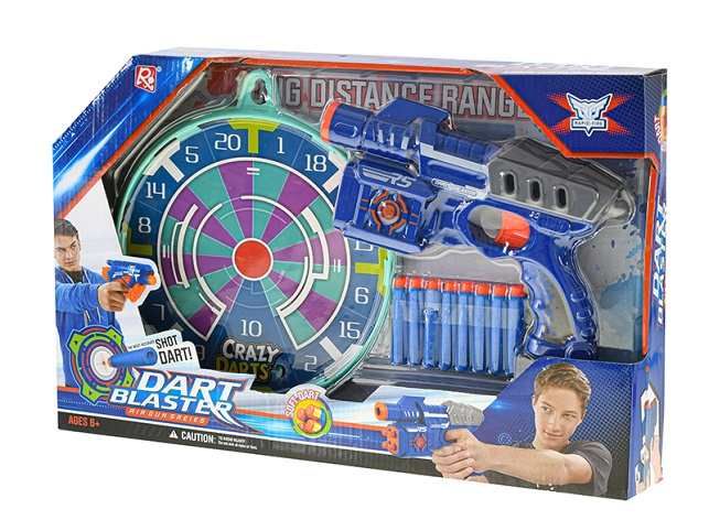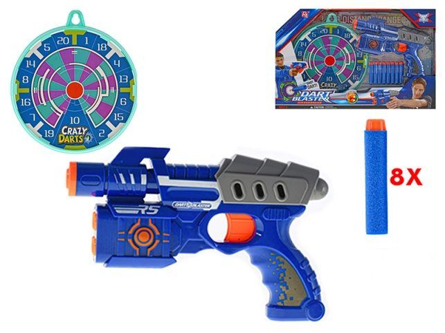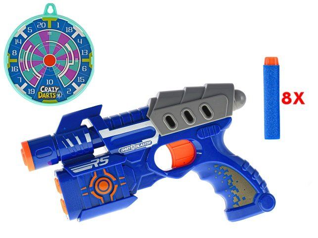 Nauč se střílet na terč a tref se do středu. Skvělá zábava, která je vhodná pro hru doma i venku. Staň se nejlepším střelcem. Pistole má velikost 24 cm. Součástí balení jsou pěnové náboje a terče. Vhodné pro děti od 6 let.