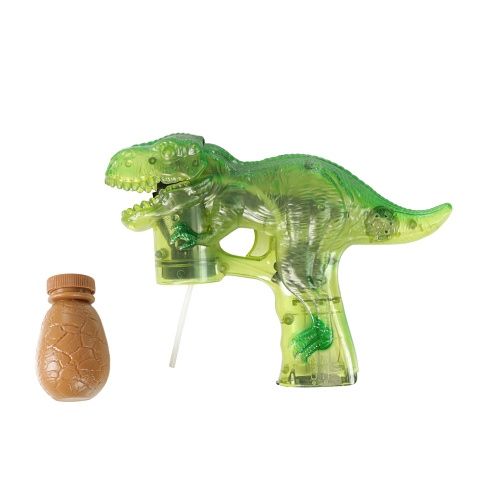 Užij si miliony bublinek vystřelujících z této senzační pistole ve tvaru dinosaura. Ideální pro hru venku nebo v interiéru. Pistole funguje na 3 ks baterí typu AA, které nejsou součástí balení. Našroubuj zásobník s bublifukem a zábava může začít!