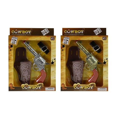 Šikovný set pro všechny malé kovboje. Sada obsahuje pistoli se zvukovým efektem, pouzdro a k tomu jednoduchý pásek na připevnění. Staň se i ty hrdinou divokého západu s touto super sadou!