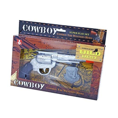 Šikovný set pro všechny malé kovboje. Obsahuje pistoli se zvukovým efektem a odznak. Staň se i ty hrdinou divokého západu s touto super sadou! Výrobek obsahuje 3 ks baterií typu AG13.