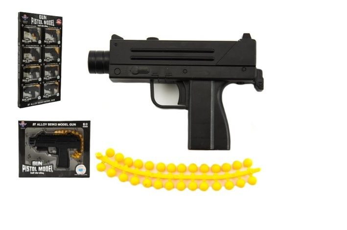 Pistole kov/plast 10cm na měkké kuličky asst v krabičce mix druhů
