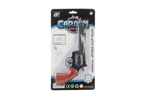 Pistol na kapslíky 8 ran. Materiál plast. Baleno na blistru. Rozměry balení cca 31x17x3 cm. Věk 3+