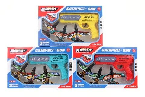 Pistole+3 vystřelovací letadla. Materiál plast. Baleno v krabičce. Rozměry balení cca 32,5x20,5x5,5 cm. Věk 3+