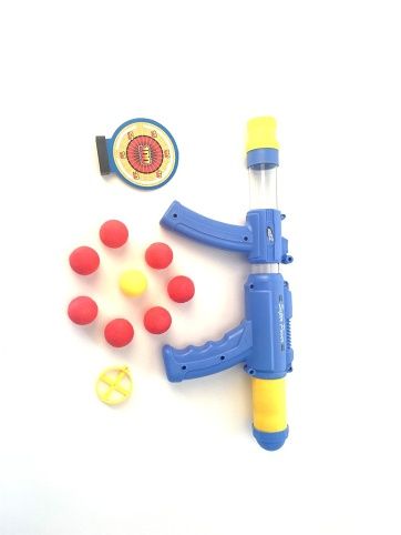 Do toho! Moderní design. Vložte míček do hlavně. Tělo zbraně se může otáčet o 360 stupňů, libovolný úhel. Bezpečnost zaručují bezpečné náboje ve formě míčku. Dostřelí až do vzdálenosti 5 m. Díly jsou z bezpečného a vysoce kvalitního plastového materiálu.