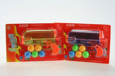 Vystřelovací pistole o velikosti cca 18cm vystřeluje plastové míčky. Balení obsahuje pistoli a pět míčků. Věk 3+