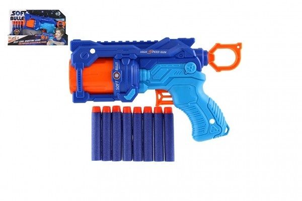 Pistole na pěnové náboje 22cm plast + 8ks nábojů v krabici 30x18x7cm