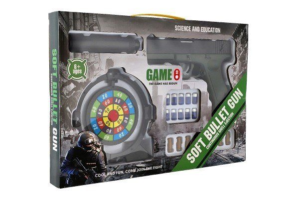 Nabij, zamiř a vystřel na terč! Podaří se ti trefit přímo střed? Můžeš si dát třeba turnaj o nejlepšího střelce se sourozencem! V balení najdeš pistoli, tlumič, 18 nábojů a terč! Zábava může začít!