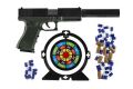 Pistole na pěnové náboje plast 20cm s tlumičem, terčem, nábojemi 18ks v krabici 40x28x4,5c