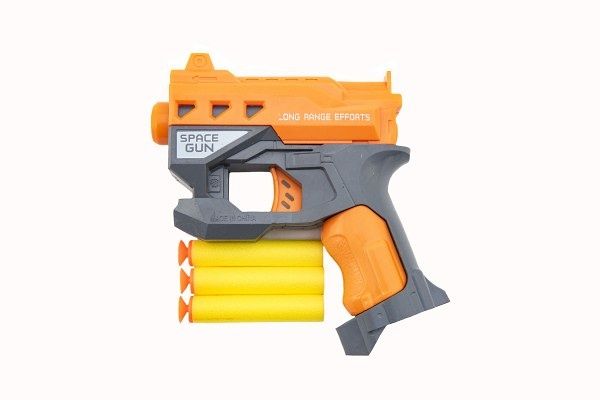 Hravá zábava nejen pro kluky! Pistole na pěnové náboje zabaví každého malého pistolníka. Náboj umístěte do komory pistole a natáhněte kohoutek. Teď už stačí jen dobře zamířit a vystřelit na jakýkoli cíl. Velikost pistole je cca 12 cm. Obsahuje pistoli a 3 ks pěnových nábojů.