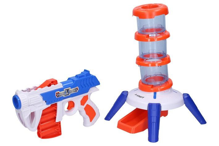 Pistole na pěnové náboje věž s terči. Rozměry 33,5 x 19,5 cm. Návod na složení věže na obalu. Posuvný vertikální zásobník na 6 nábojů. 12 nábojů v balení.