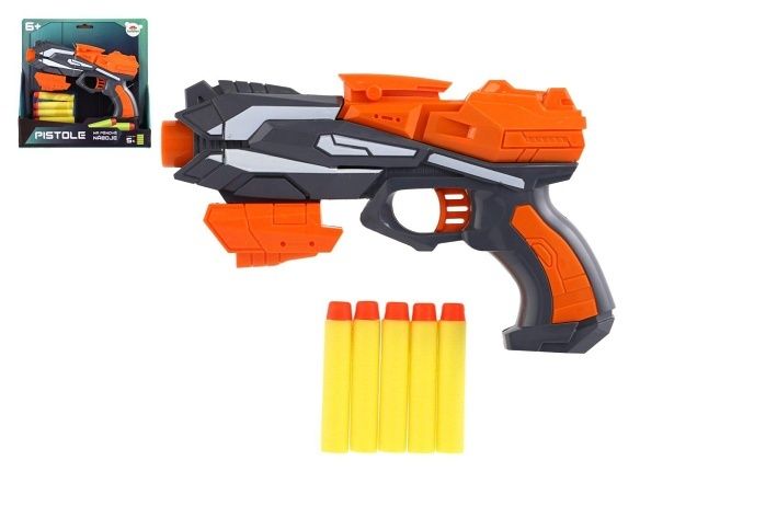 Hravá zábava nejen pro kluky! Stylová pistole na pěnové náboje zabaví každého malého pistolníka. Umístěte měkký pěnový náboj do hlavně pistole, zatáhněte za nabíjecí část, zamiřte na cíl a zmáčkněte spoušť!
