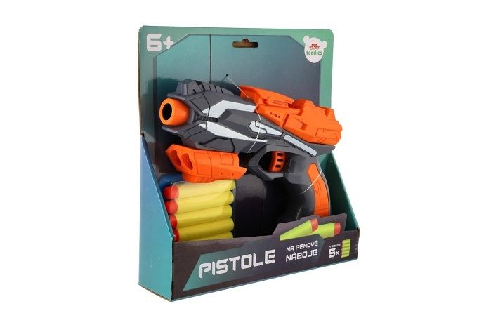 Pistole oranžová na pěnové náboje 20x14cm plast + 5ks nábojů oranžová na kartě
