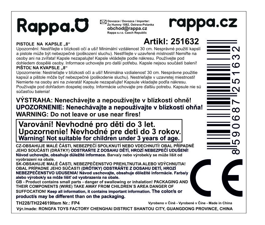 Pistole plastová na kapsle 8 ran