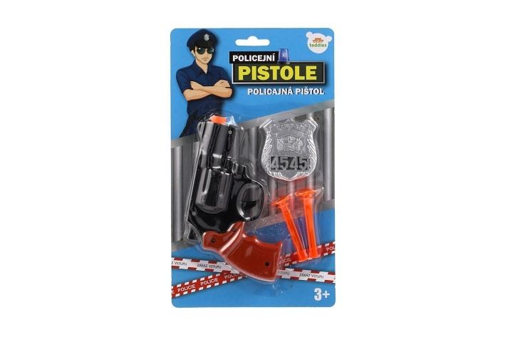 Pistole policejní 15cm plast s odznakem + přísavky 2ks na kartě