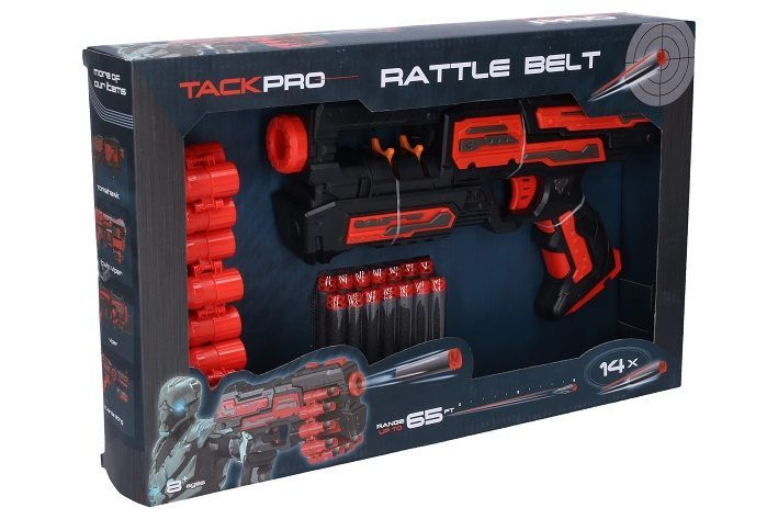 Pistole na pěnové náboje s pásovým zásobníkem Rattle Belt.