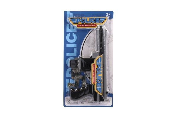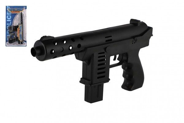 Pistole/Samopal jiskřící plast 28cm na setrvačník na kartě 18x35cm