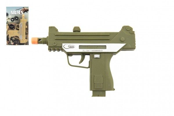Pistole samopal plast 17,5cm na baterie se zvukem se světlem 2 barvy na kartě