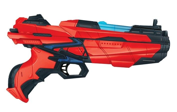 Pistole set. Velikost 28 cm. Set obsahuje 6 pěnových nábojů. Vytváří světelné efekty. 3xAG13 baterie součástí.