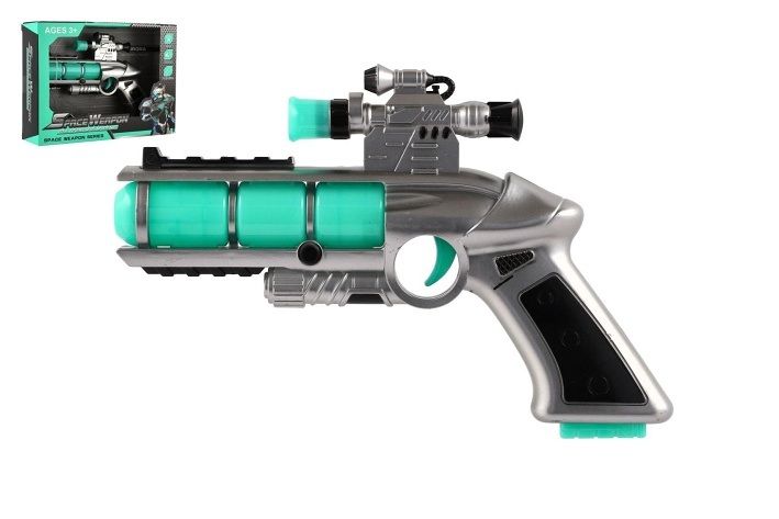 Pistole se zaměřovačem je reálně vypadající zbraň z plastu pro děti, bude se zajisté líbit všem klukům, kteří mají rádi zbraně. Po vložení baterií 2x AA vydává zvuky a svítí.